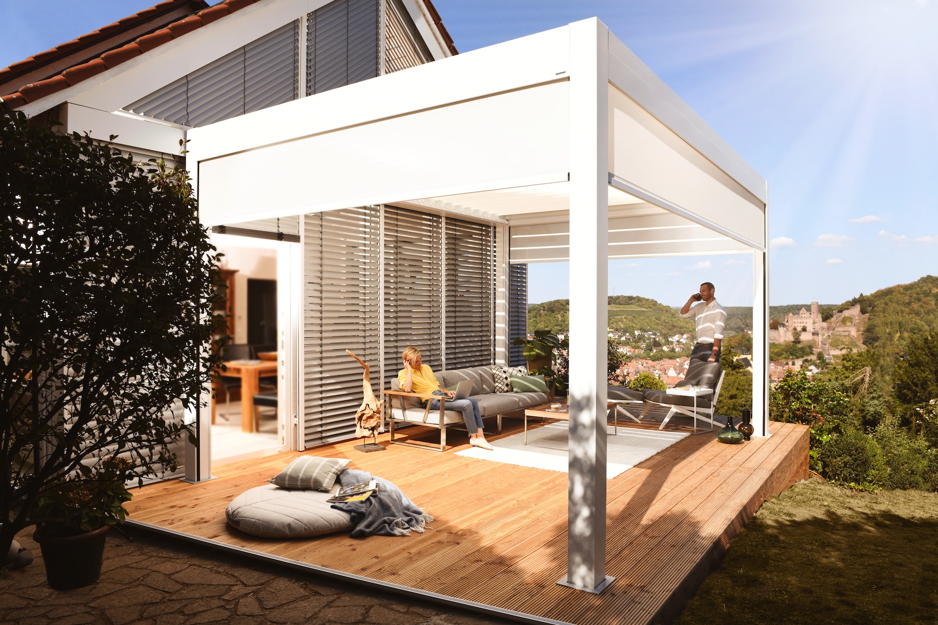 Schutzfunktion: Schützen Sie sich mit einem Lamellendach vor Sonneneinstrahlung und ungemütlichen Wettererscheinungen wie Regen und starken Wind.