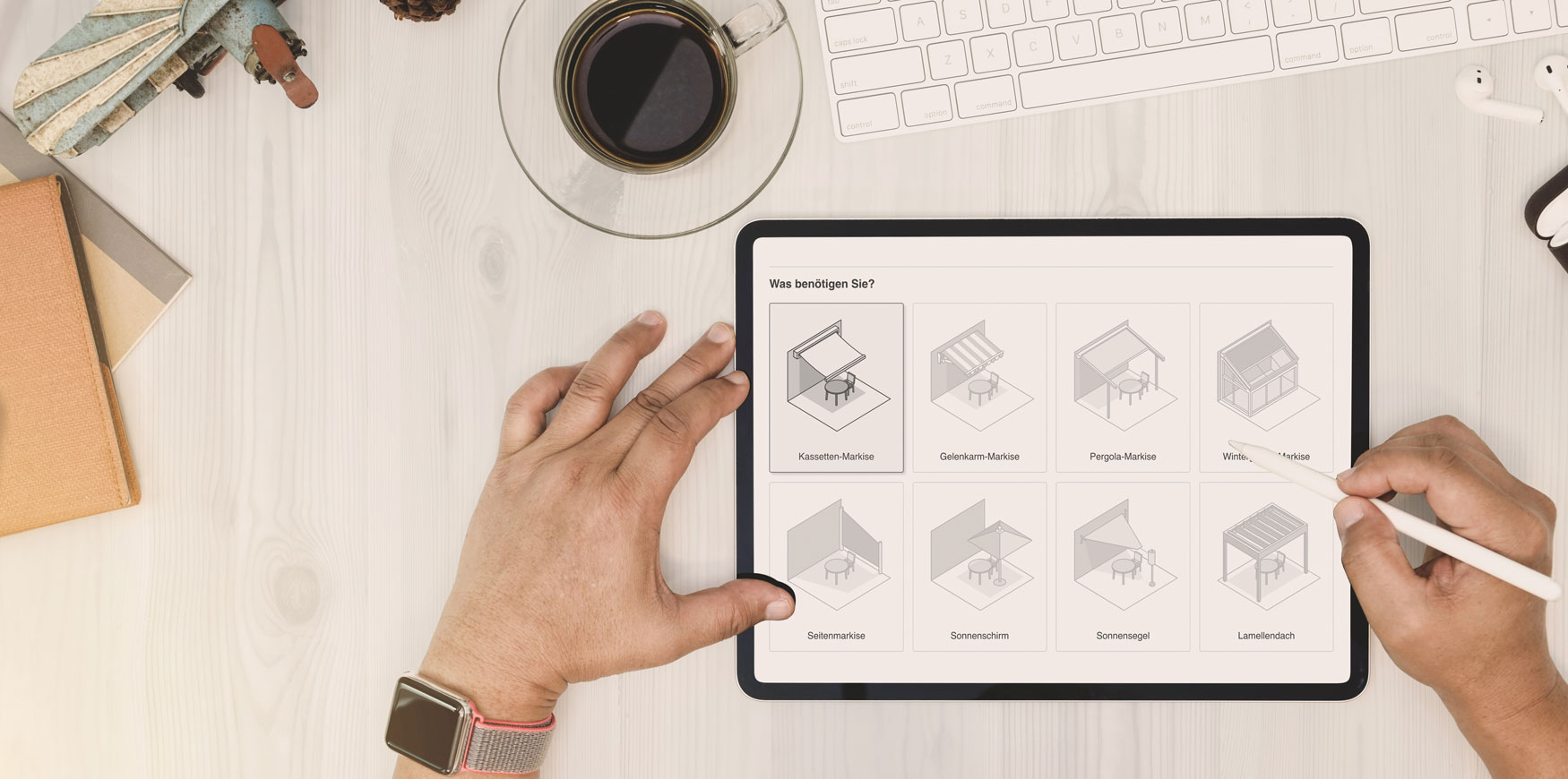 Erleben Sie mit unserer preisgekrönten AR-App alle Outdoor Living Produkte über ihr Tablet oder Handy direkt auf ihrer Terrasse.