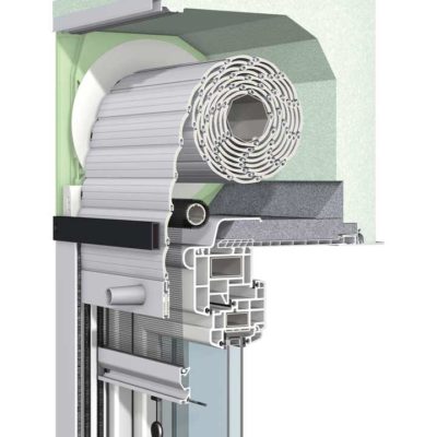 Neubau-Aufsetz-Rollladen - Diese Rollladen kommen bei Neubauten zum Zuge, können aber auch für Fassadensanierungen genutzt werden. Sie lassen sich wirtschaftlich montieren, da der Einbau gemeinsam mit dem der Fenster passiert. Einer Sturz über dem Fenster ist nicht notwendig.